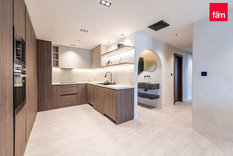 This exquisitely upgraded home features two spacious bedrooms and two modern bathrooms, complemented by an open kitchen equipped with premium kitchen appliances and smart home systems for seamless living. The expansive balcony invites you to unwind while soaking in the picturesque waterfront vistas, all within a secure, gated community renowned for its privacy and exclusivity.